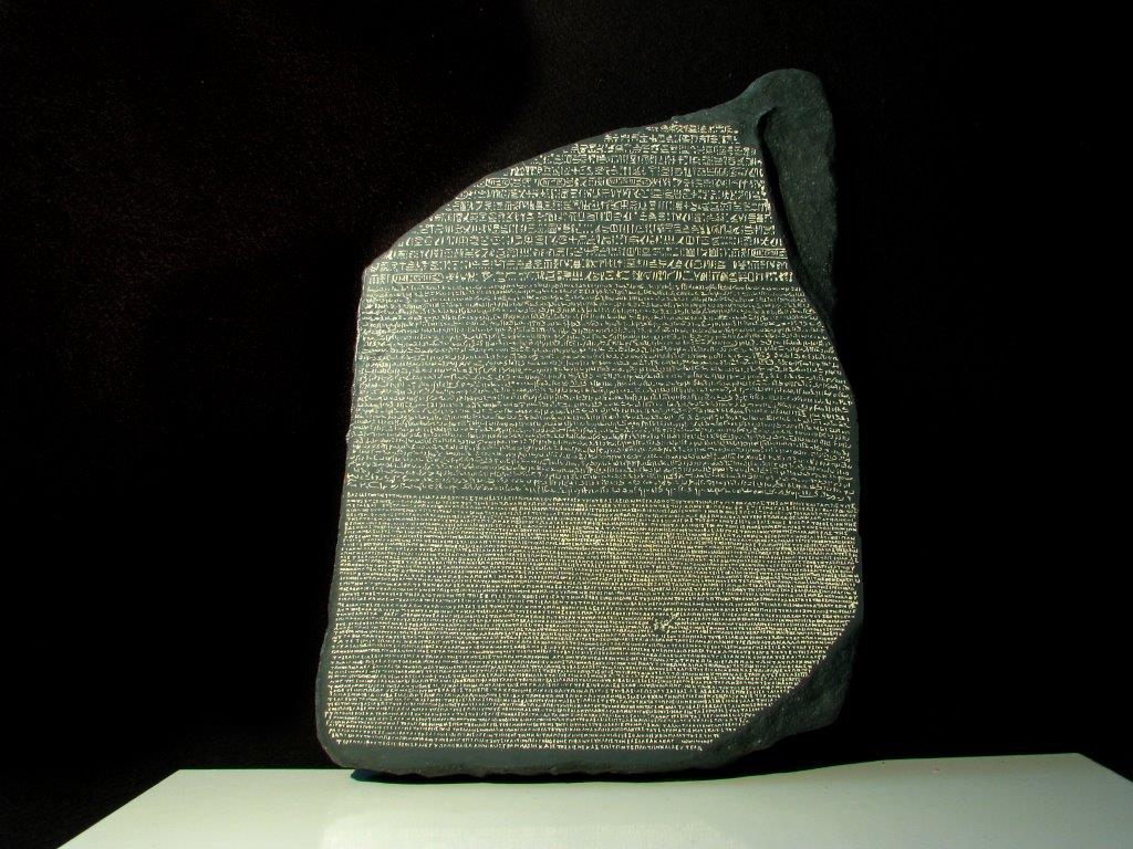 The Rosetta Stone is a black basalt stone, unearthed in 1799 by a soldier in Napoleon’s