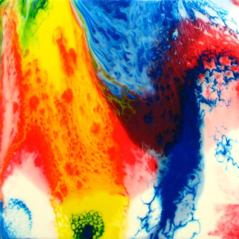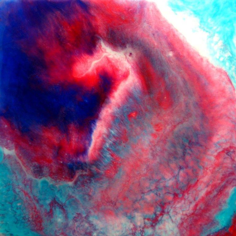 Most of my works remain unnamed as in the tradition of most abstract art, whilst others are christened as the resin cures. The emerging, organic patterns and fusion of colours often remind me of some natural form. This is how