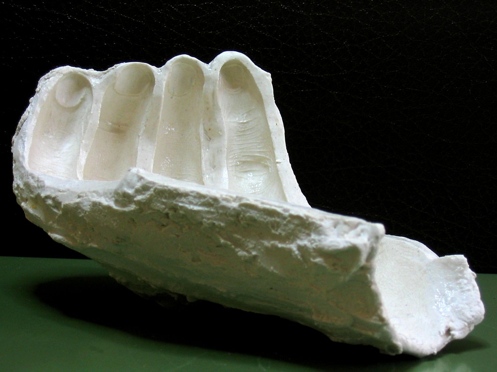 So for my second attempt I went for a cast of my left hand. I used plaster on plaster (plaster mould, plaster cast) and the result came out really well. I still lost a few hairs in the process, but overall it was well worth the pain!