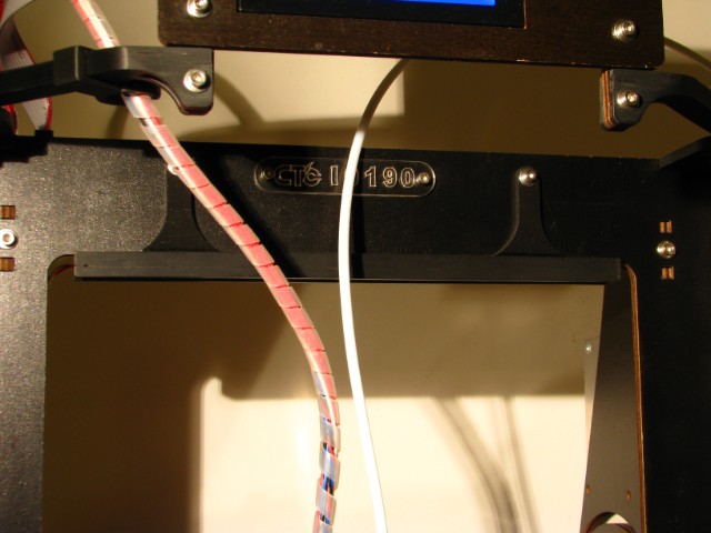 Following the installation of the Bowden tube filament feeder, it was necessary to move the LCD screen forward to create space for the Bowden tube to pass behind the screen. The new